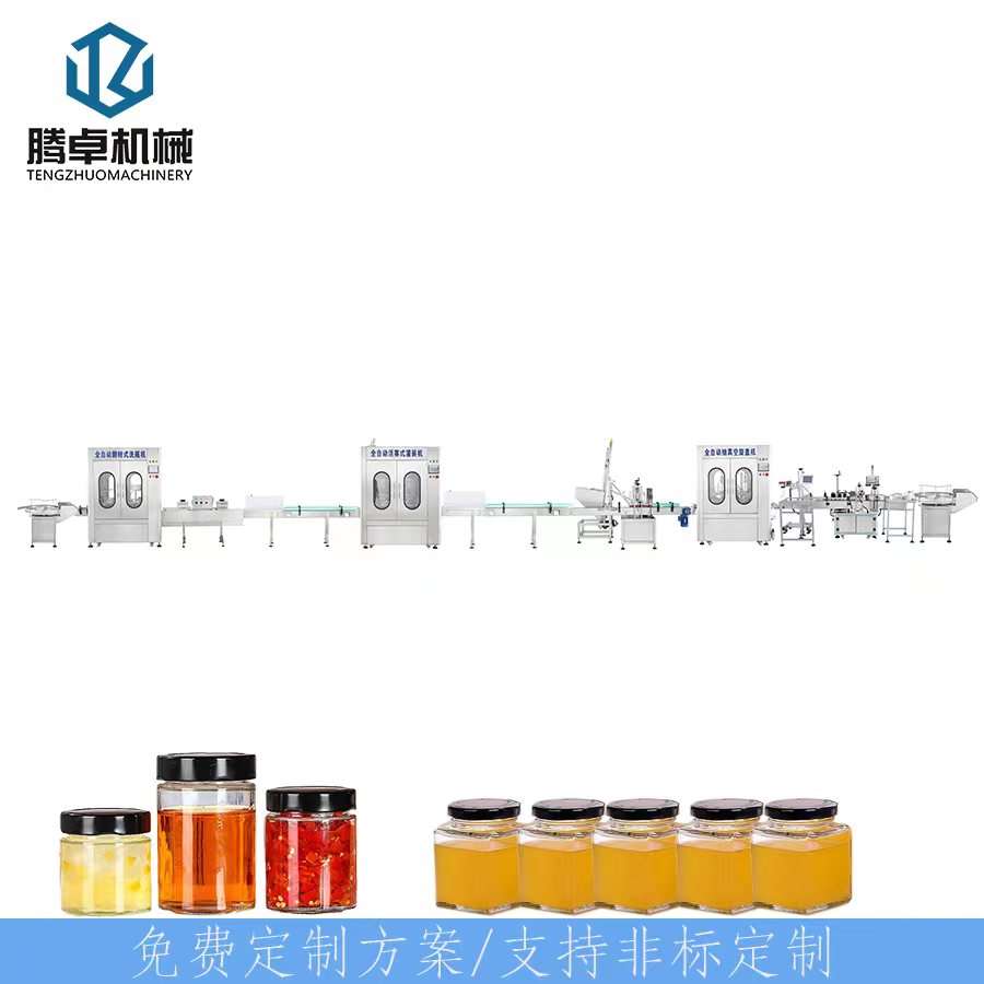 此生產線還適合用于醬料,辣椒醬,果汁飲料,酒類等食品的包裝。