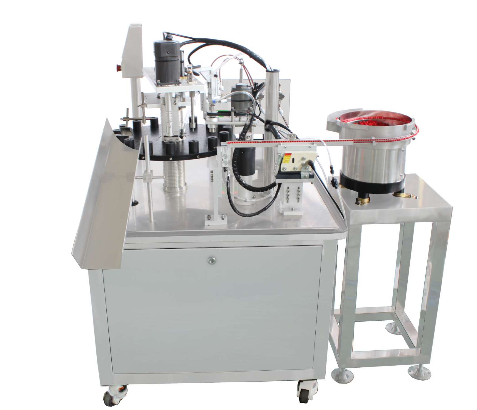 自動灌裝軋蓋機一體機可用于西林瓶、精油瓶、香水瓶全自動灌裝旋蓋及鎖蓋設(shè)備。整套流程分為:理瓶-灌裝-壓塞-掛蓋-軋蓋,其特點為生產(chǎn)穩(wěn)定,對包材通用性強。